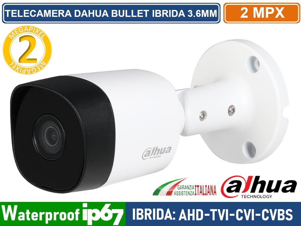 TELECAMERA DAHUA IBRIDA IN METALLO AHD CVI TVI CVBS 3.6MM 2.1 MP 1080P IR 20M